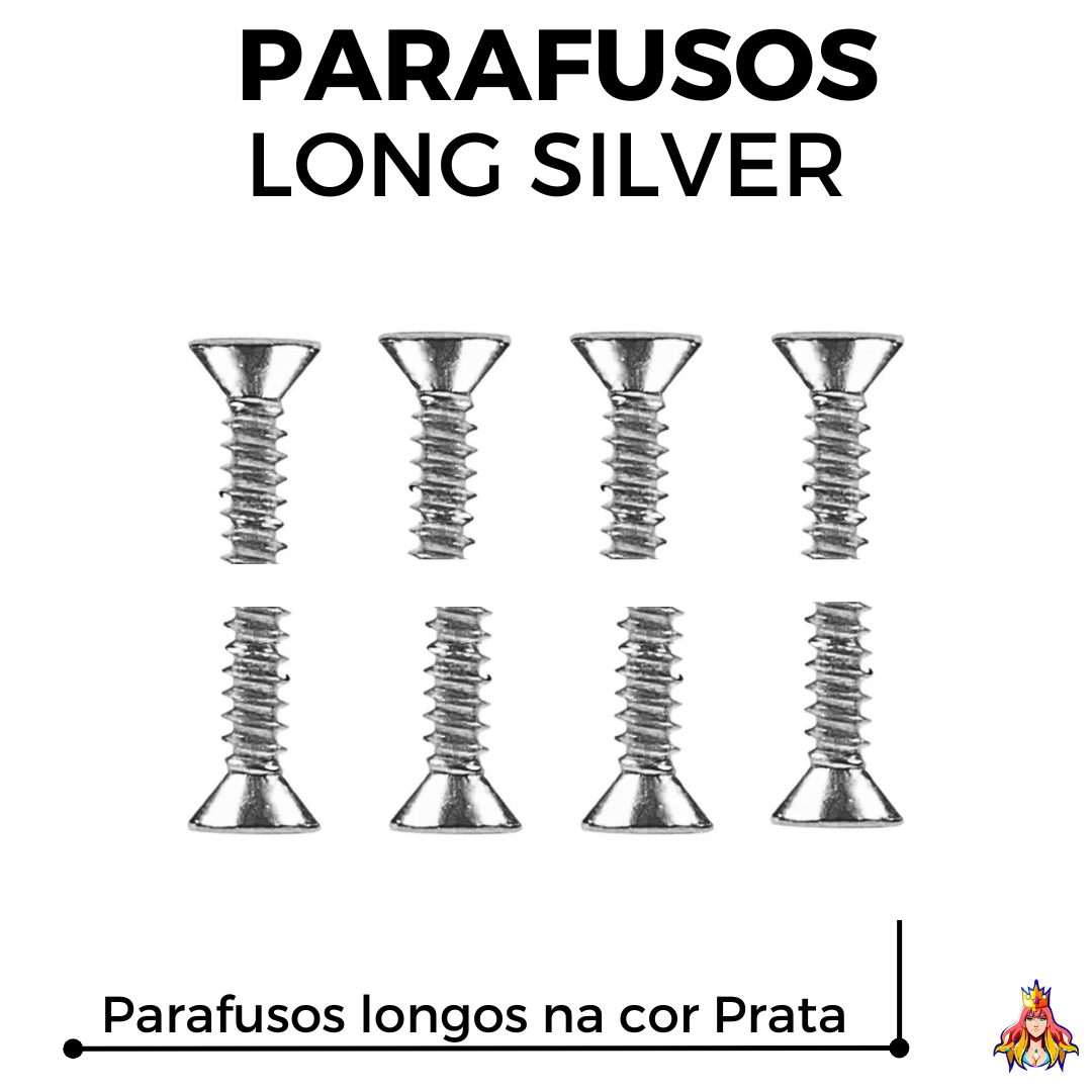 🚀 Kit de Parafusos para Trucks de Fingerboard - Marca Custom - Tamanho Long (Mais comprido) - Cor Prata.